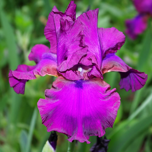 Яркий представитель бородатых, высокорослых сортов. На длинных, мощных цветоносах формируются крупные, эффектной формы и расцветки бутоны. Основание у них бронзовое, а вот сами лепестки – малиново-фиолетовые. Их окрас неоднородный, а переливчатый, словно хамелеон. Бородки – насыщенно синие.Саженец Gypsy Romance совершенно неприхотлив в выращивании, морозоустойчив. В благодарность за подкормки радует многочисленным и продолжительным цветением