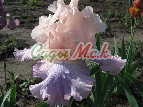 Stepping Out обладает яркой, контрастно-чернильно-фиолетовой пликатой на белом фоне. Бородка желтая в гороле и синяя к краю. Лепестки слегка гофрированные, плотные, искрящиеся. Срок цветения поздний.
