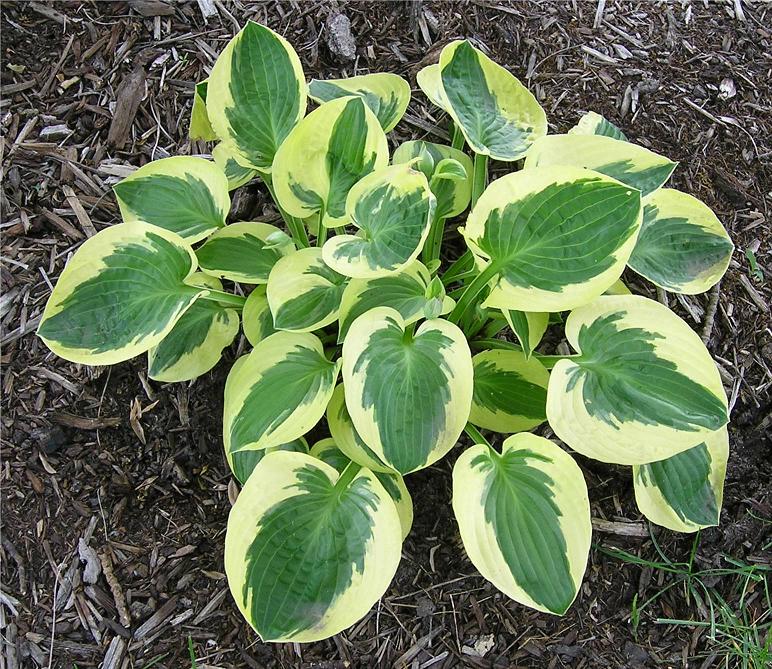 Хоста Brim Cup - невысокий сорт с потрясающими декоративными листьями. Они небольшие, рифлёные, чашеобразной формы. Их центральная часть тёмно-зелёная, а края - золотисто-жёлтые. Цветение начинается немного раньше, чем у остальных хост: в конце июня – начале июля. Соцветия, высотой 50 см, сначала распускаются в голубовато-сиреневом оттенке, а затем также белеют. То есть в июле и оборка листьев, и цветы станут белыми. Вырастает всего до 30 см – 35 см. Средний размер листьев 16*13 см.
