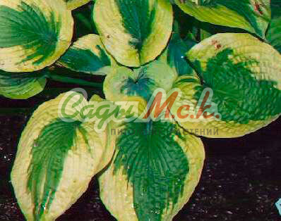 Хоста Sharmon - многолетнее корневищное растение. Листья 21 х 15 см, овально-сердцевидные, слегка морщинистые, блестящие, зеленые с зеленовато-желтым центром весной, зеленые летом. Цветки лиловые, воронковидные. Цветение начинается в июле.