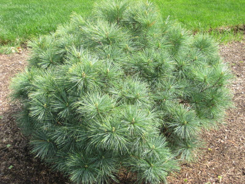 Хвоя прямая, мягкая, гибкая и длинная, до 10 см. Имеет сизовато-зеленый или темно-зеленый окрас. Хвоинки собраны в пучки, по 5 штук. Они сохраняются в течение 2 – 3 лет.