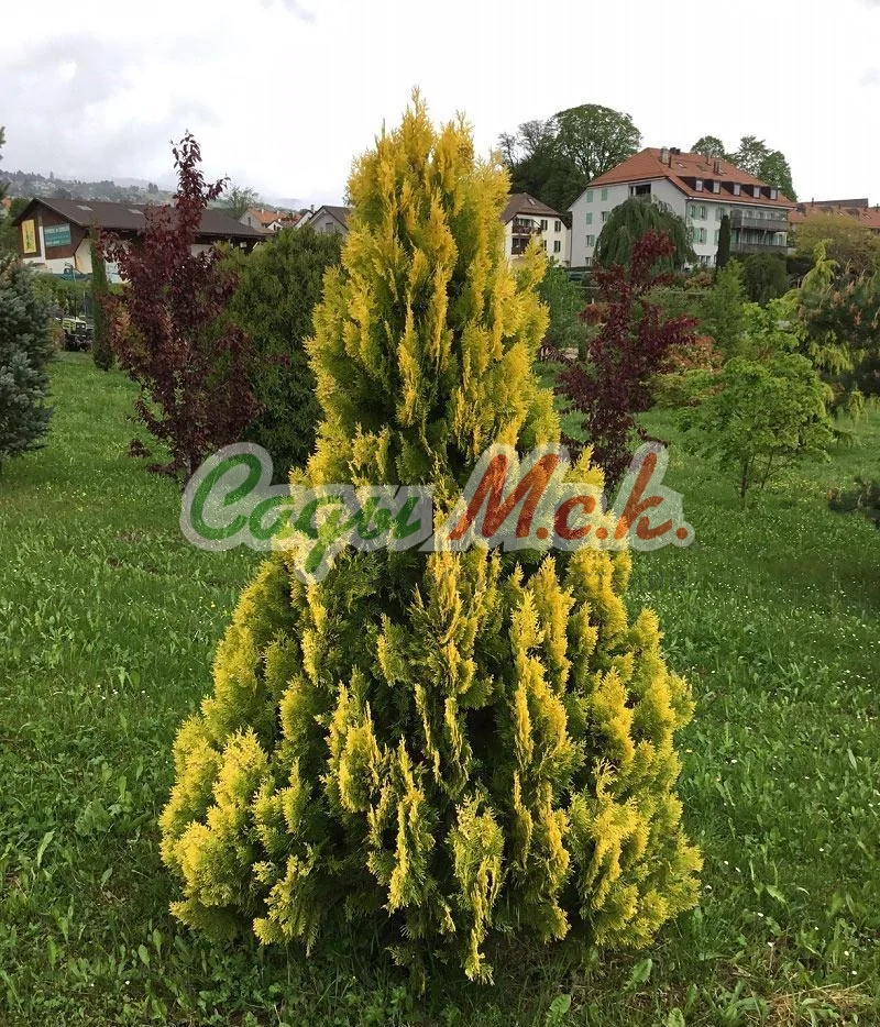 Небольшое хвойное деревце с конической кроной. Растет медленно. В 15 лет достигает высоты 2м и 0,8м в диаметре. Характерная особенность сорта – ярко-желтые (почти оранжевые) побеги текущего года, которые делают деревце ярким солнечным акцентом на фоне темно-зеленой и голубоватой листвы других хвойных и лиственных растений. Позже листва становится светло-зеленой, а при подготовке к зиме приобретает бронзовый оттенок.